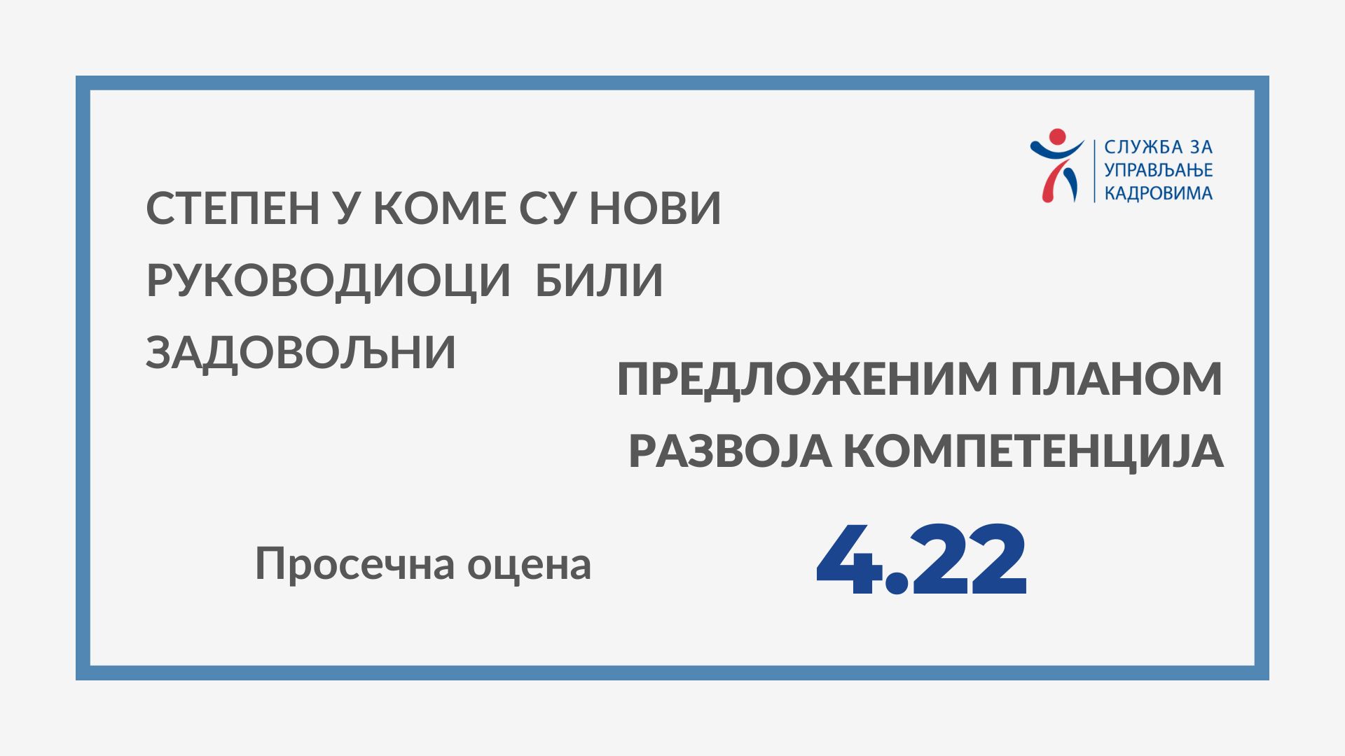Резултати указују да просечна оцена генералног задовољства целокупним процесом каријерног саветовања износи 4,25. Подједнако је оцењено и задовољство добијеним, односно предложеним планом развоја компетенција од стране психолога у Центру за управљање каријером и износи 4.22.