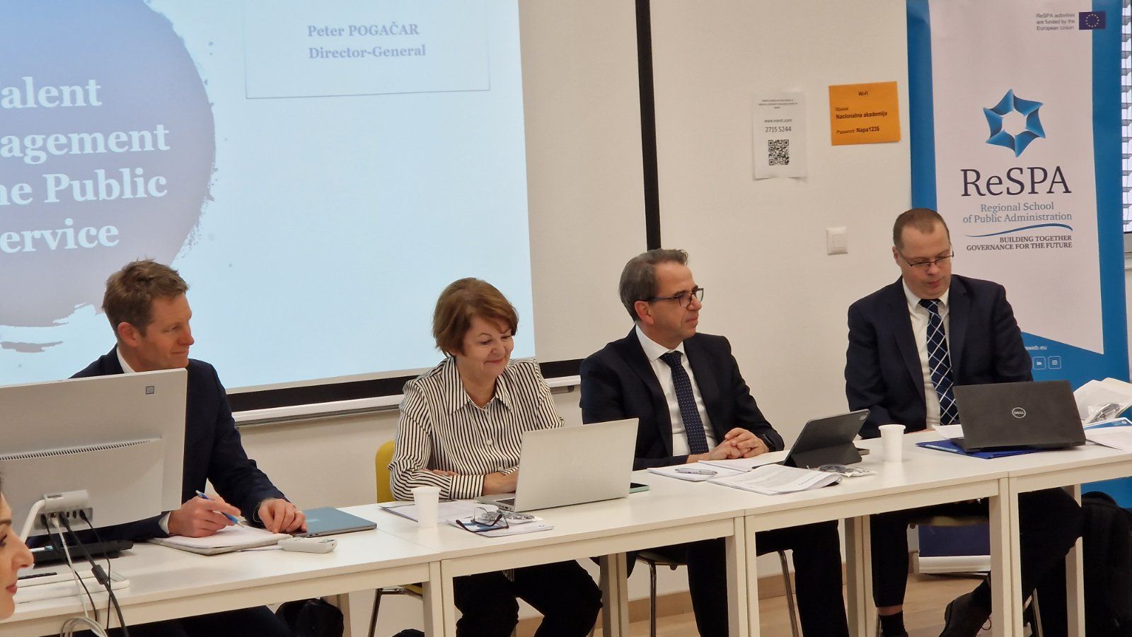 Првог дана, генерални директор Директората за за јавни сектор Словеније, господин Петер Погачар, говорио је о управљању талентима са фокусом на развој стратегија и стратешко планирање. О регрутацији и развоју каријере државних службеника у Србији говорила је Јелена Бабић, в.д. помоћника директора Службе за управљање кадровима и руководилац Сектора за регрутацију и одабир кадрова, док је Сајам студентске стручне праксе представила Валентина Анђелковић, испред Министарства државне управе и локалне самоуправе. РеСПА експерт, господин Јан Мејер Сахлинг, водио је панел дискусије о примерима добре праксе у управљању талентима и селекцији на основу заслуга, у којој су учествовали сви представници земаља Западног Балкана.