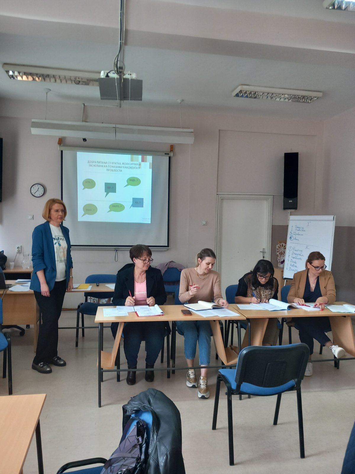 Почетком маја, дипломиране психолошкиње из Сектора за регрутацију и одабир кадрова, Драгана Вучковић, Јована Стојадиновић и Александра Станковић, у сарадњи са главном консултанткињом на пројекту, дипл. псих. Сањом Левердом, одржале су три дводневне обуке за службенике у јединицама локалне самоуправе широм Србије за спровођење интервјуа базираног на компетенцијама.